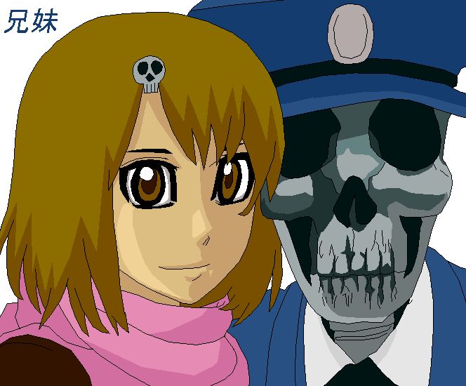 連載開始を記念して、主人公の赤木蛍と、幽霊警官を描いてみました。