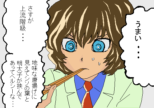 file7「笑い男」より、上流階級(セレブグループ)の唐揚げの味に感動するマーニーを描いてみました。