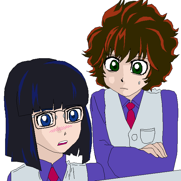 file43「怪談朗読」より、ちょっと恥ずかしい趣味を告白する前花さんと、ちょっと困惑するマーニーを描いてみました。